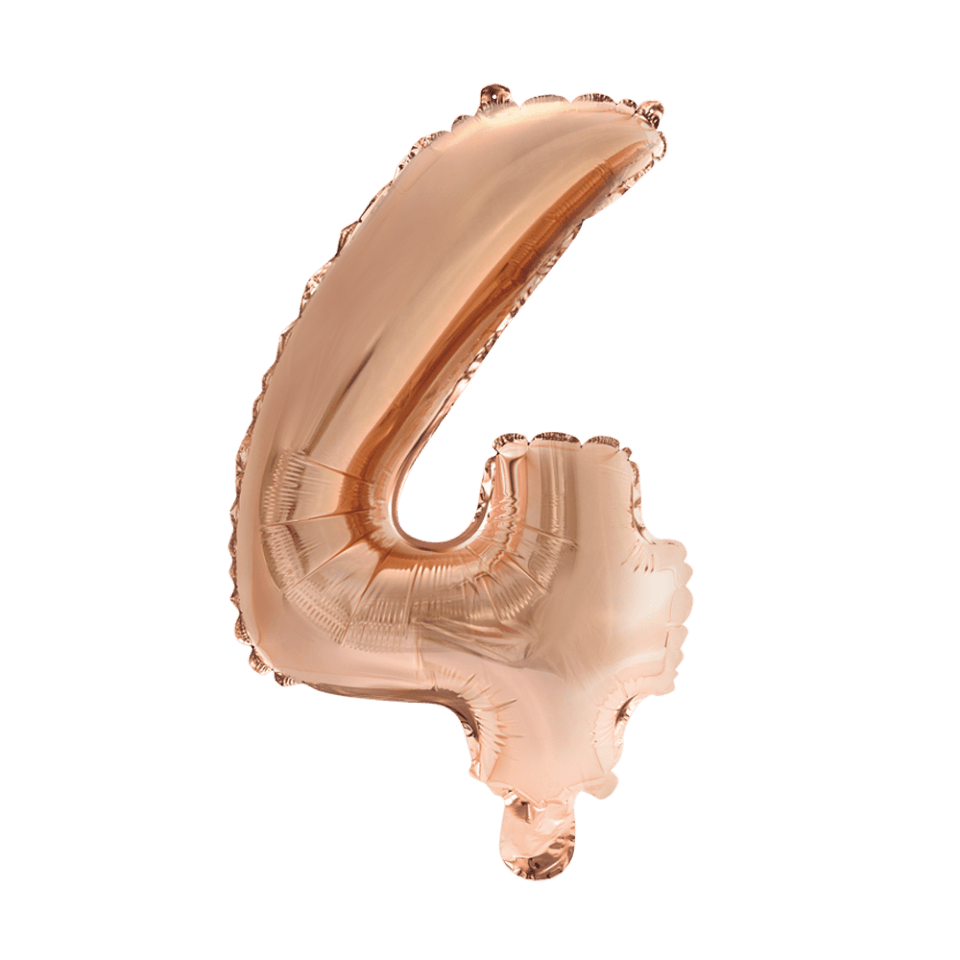 Globo Foil Figura 4 Oro Rosa 41cm con pajita