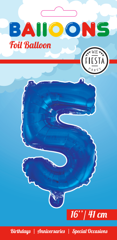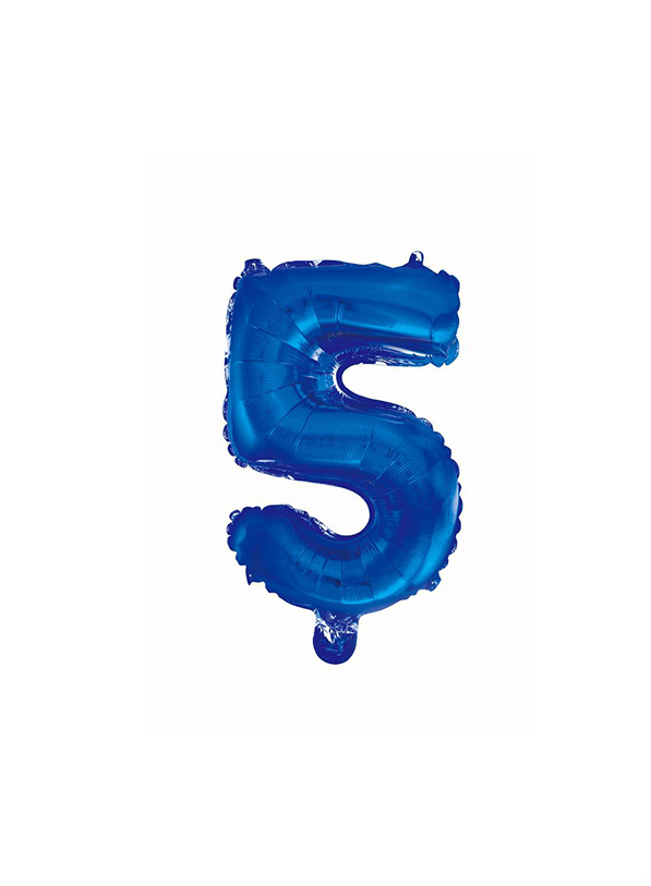 Globo Foil Figura 5 Azul 41cm con Pajita