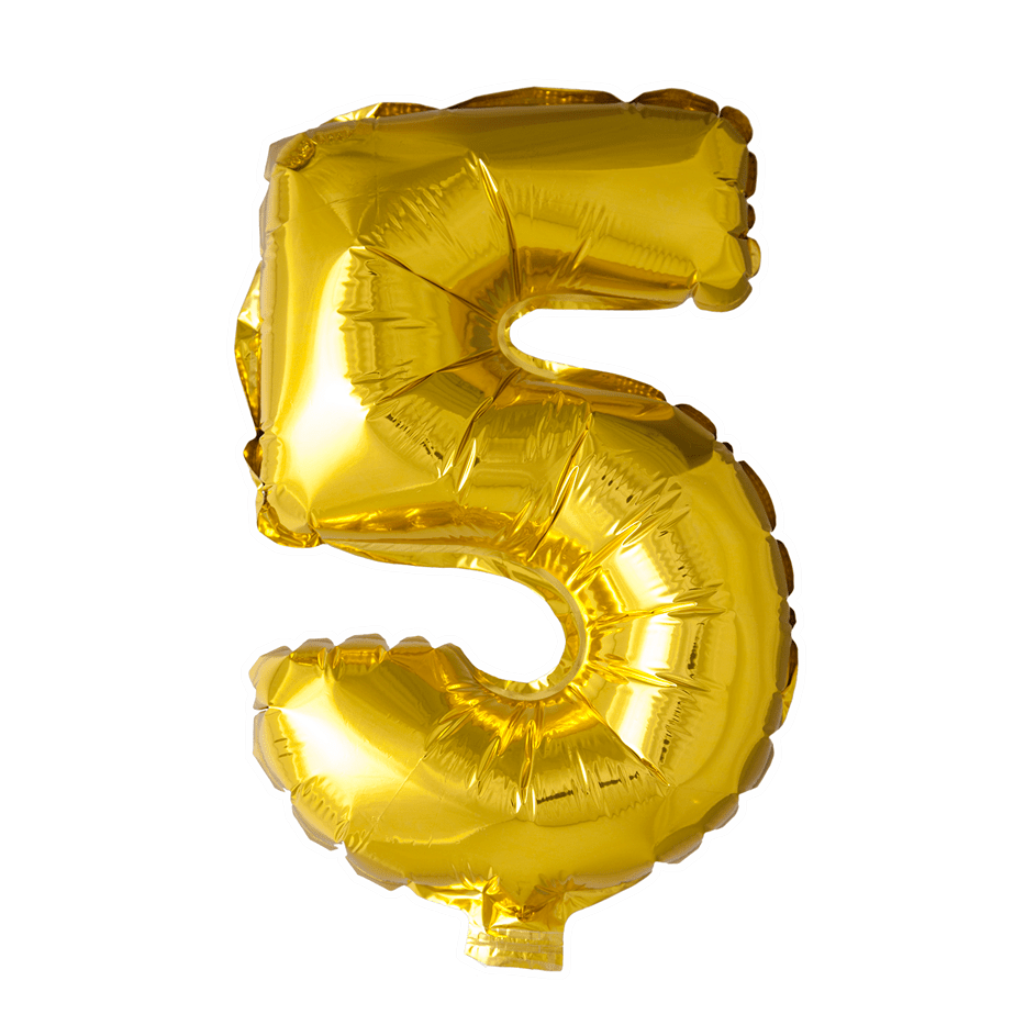 Globo Foil Figura 5 Oro 41cm con Pajita