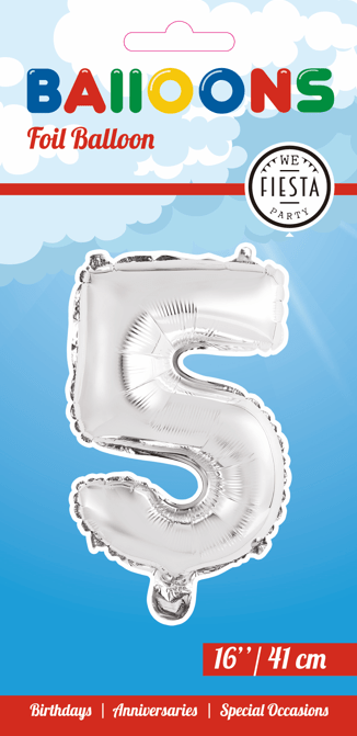 Globo Foil Figura 5 Plata 41cm con Pajita