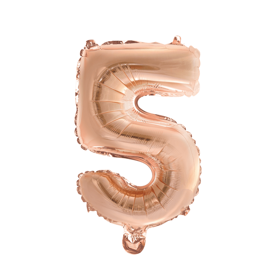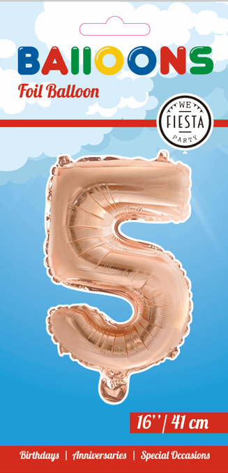 Globo Foil Figura 5 Oro Rosa 41cm con Pajita