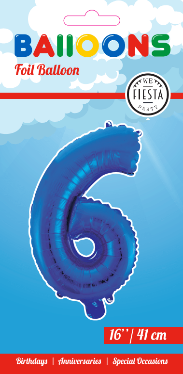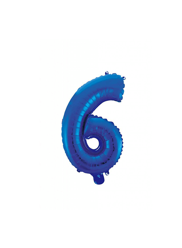 Globo Foil Figura 6 Azul 41cm con Pajita