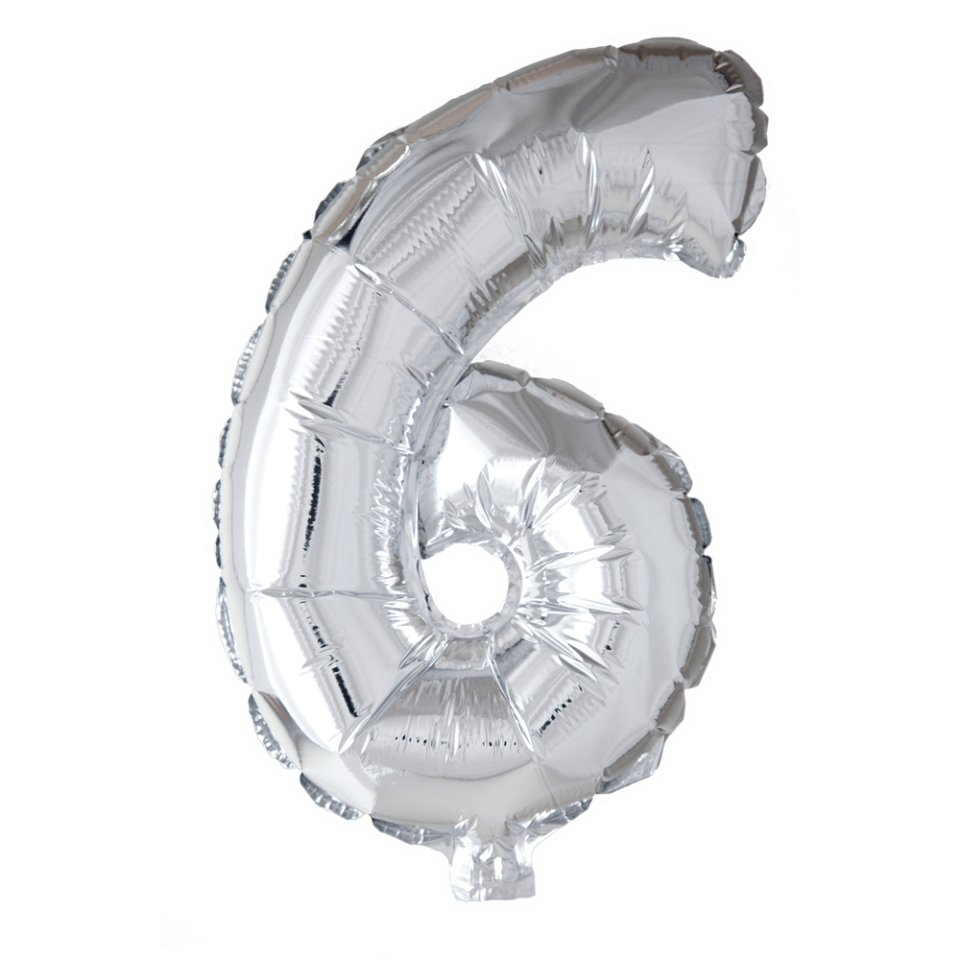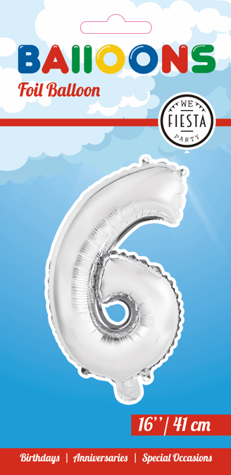 Globo Foil Figura 6 Plata 41cm con Pajita