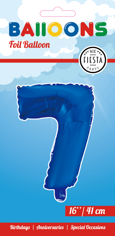 Globo Foil Figura 7 Azul 41cm con Pajita