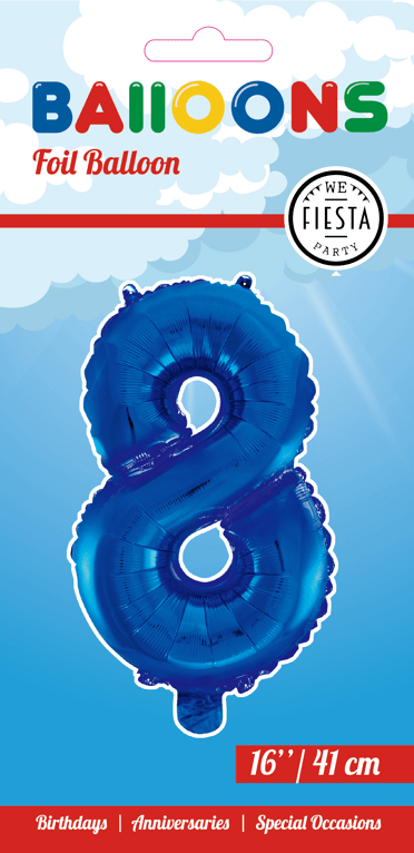 Globo Foil Figura 8 Azul 41cm con Pajita