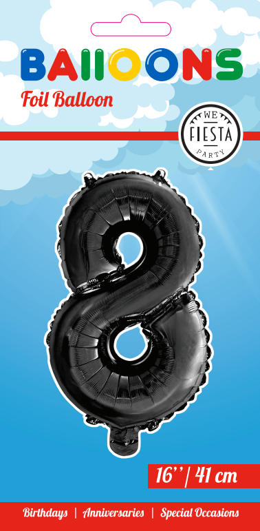 Globo Foil Figura 8 Negro 41cm con Pajita