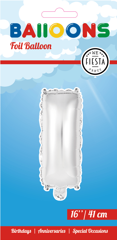 Globo Letra I Plata 41cm con pajita