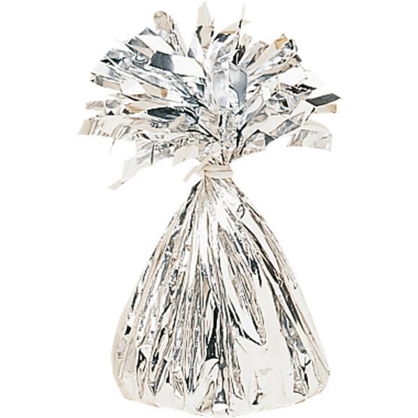Los pesos en forma de cono están envueltos en una brillante lámina dorada y rematados con un penacho de hebras de lámina. El penacho incorpora un lazo oculto, que facilita la sujeción segura de los globos. Sólo tienes que atar la cinta o el cordel a la pesa y ¡listo!