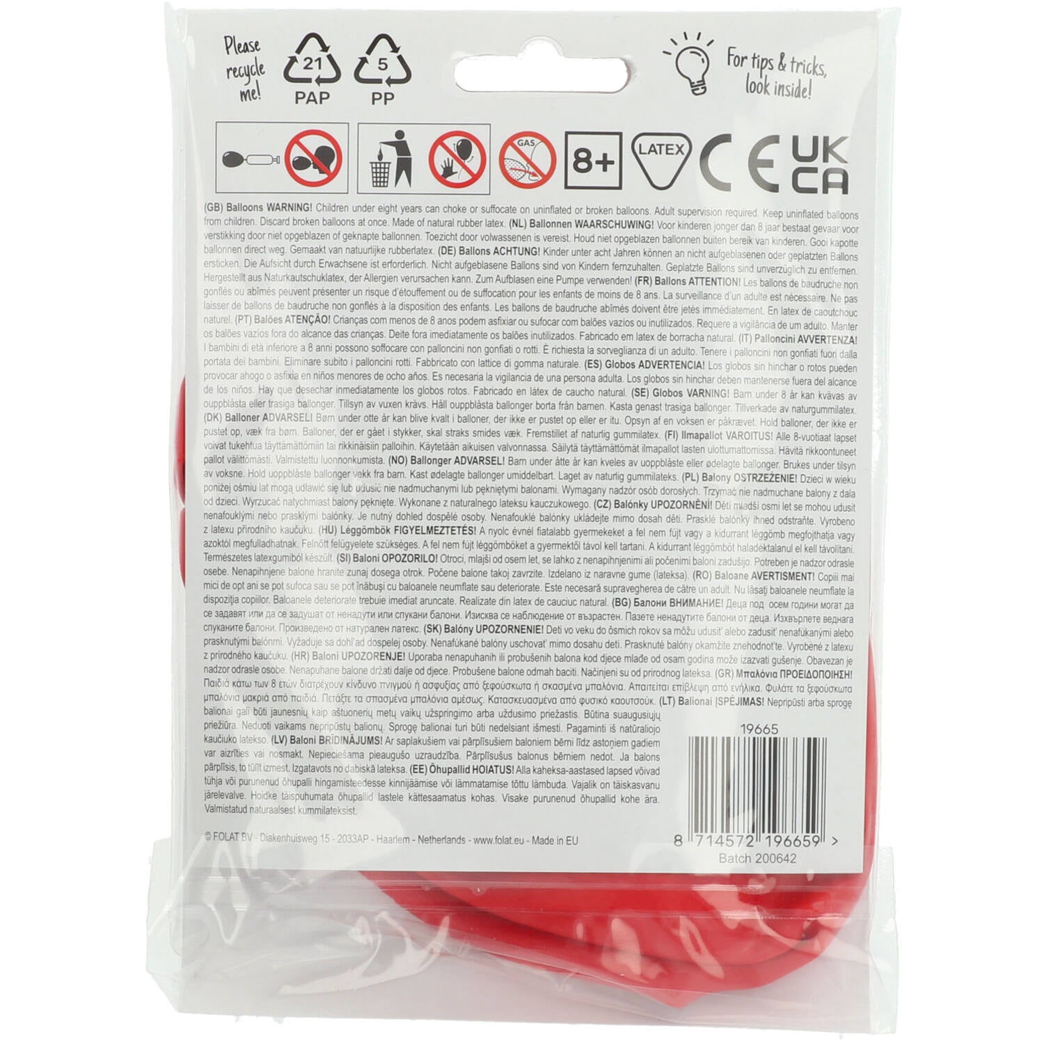 Contenido: 1 globo de látex