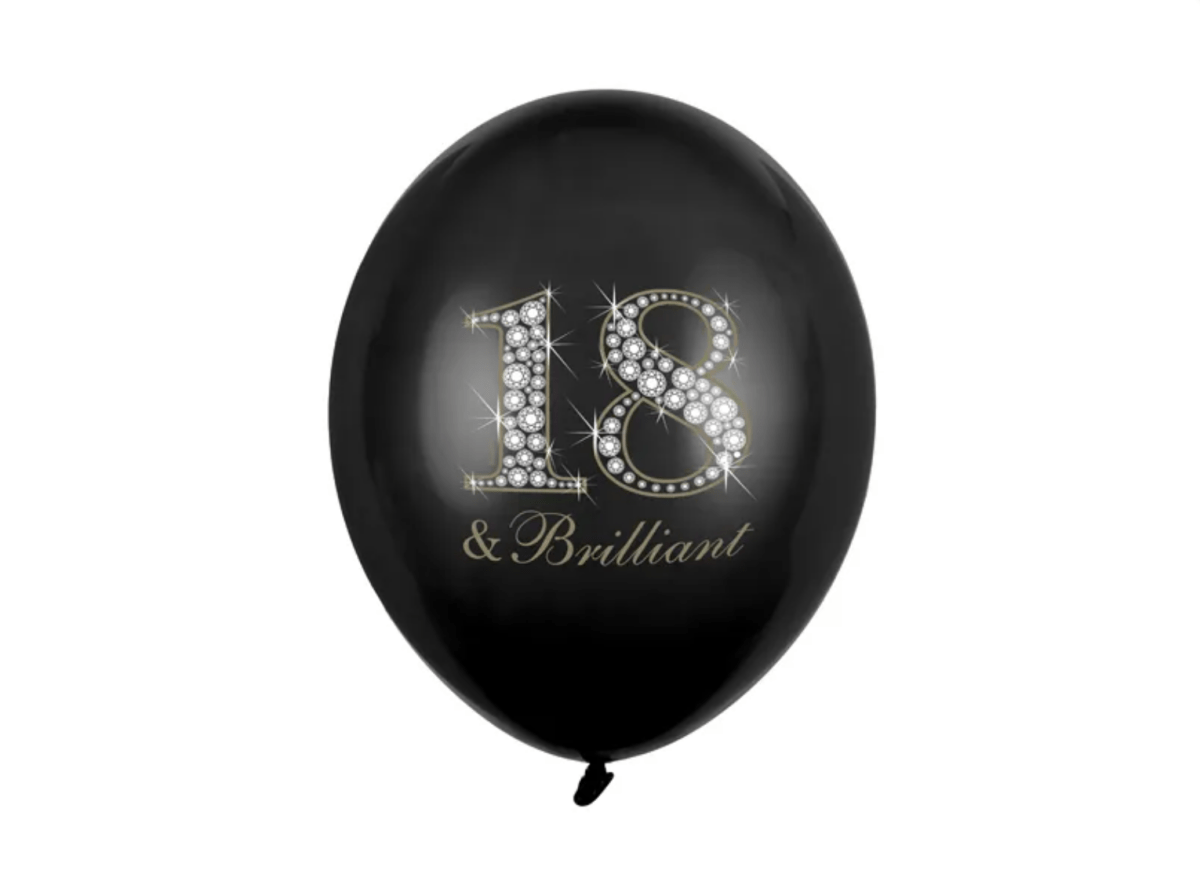Globos 18 Años y Negro Brillante 30cm 6pcs