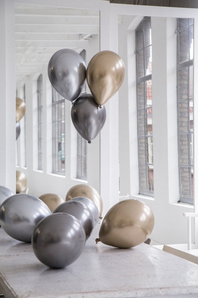 Globos Plata, Oro y Antracita Mix Cromo 33cm 12pcs