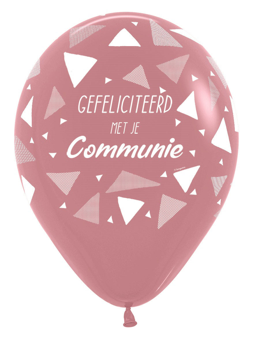 Globos Felicidades por tu Comunión Triángulos Palo de Rosa 30cm 25pcs