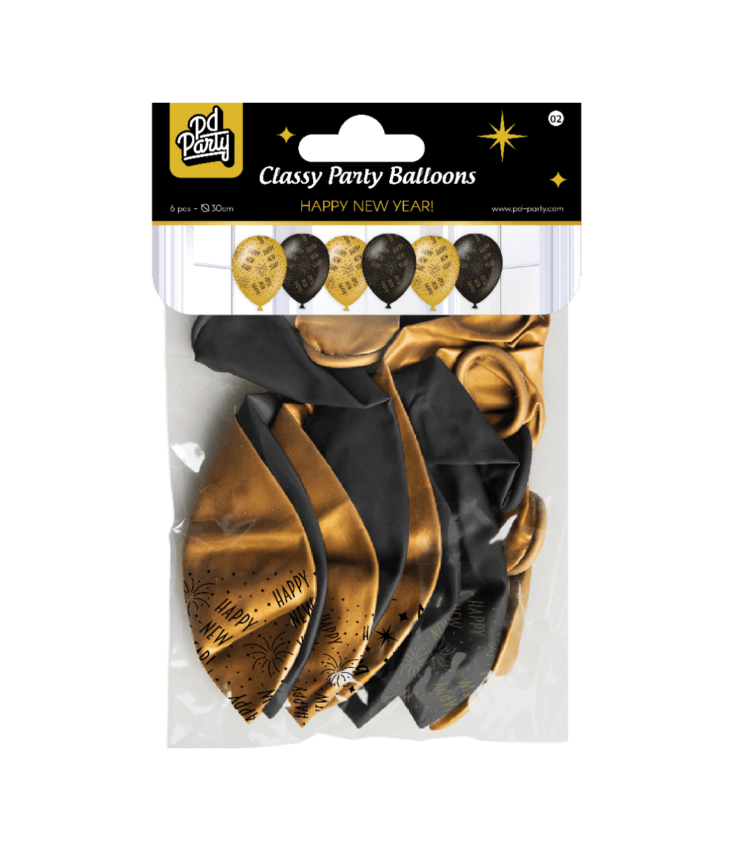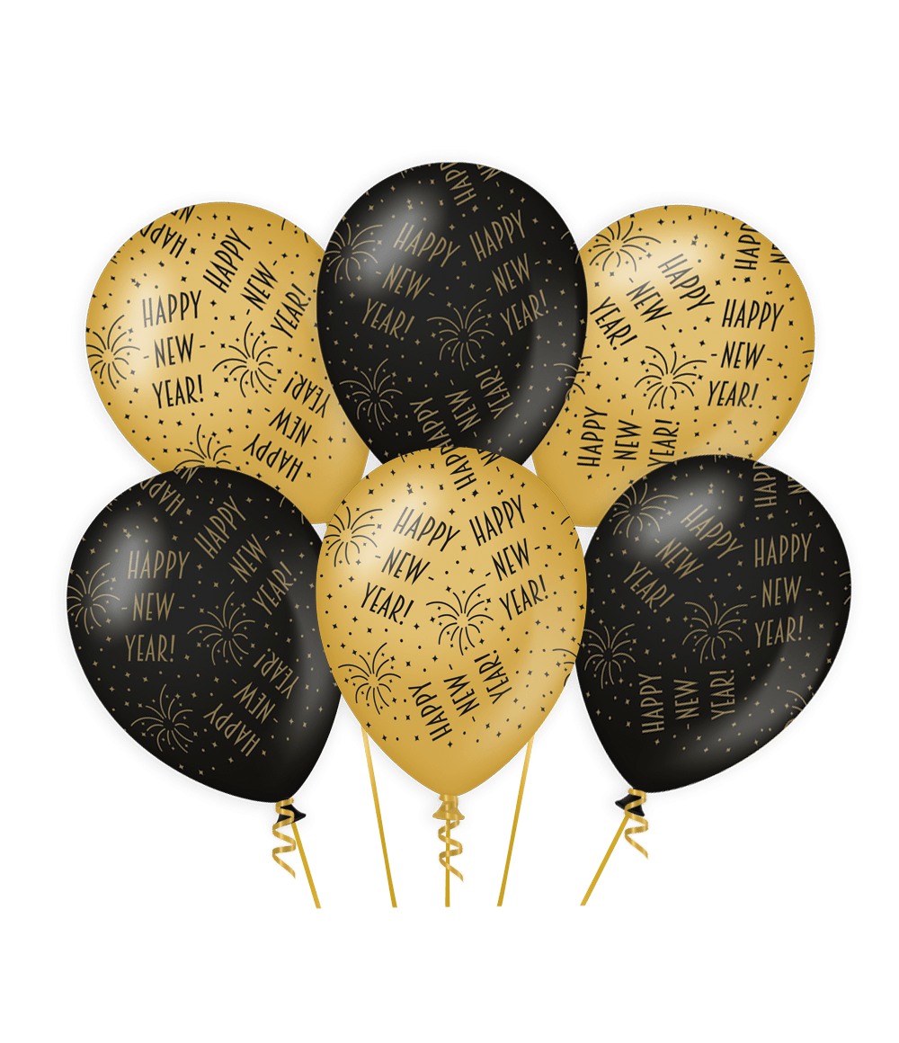 Globos Feliz Año Nuevo Oro Negro 30cm 6pcs