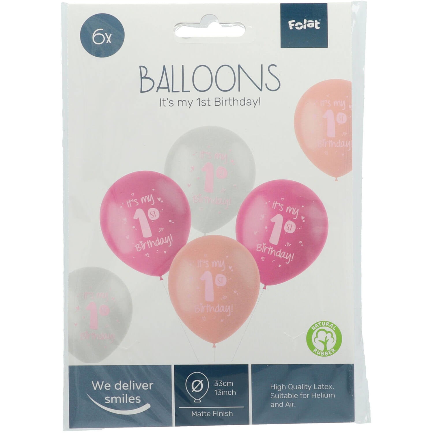 Globos Es Mi 1er Cumpleaños Rosa 33cm 6pcs