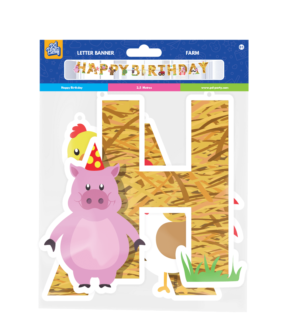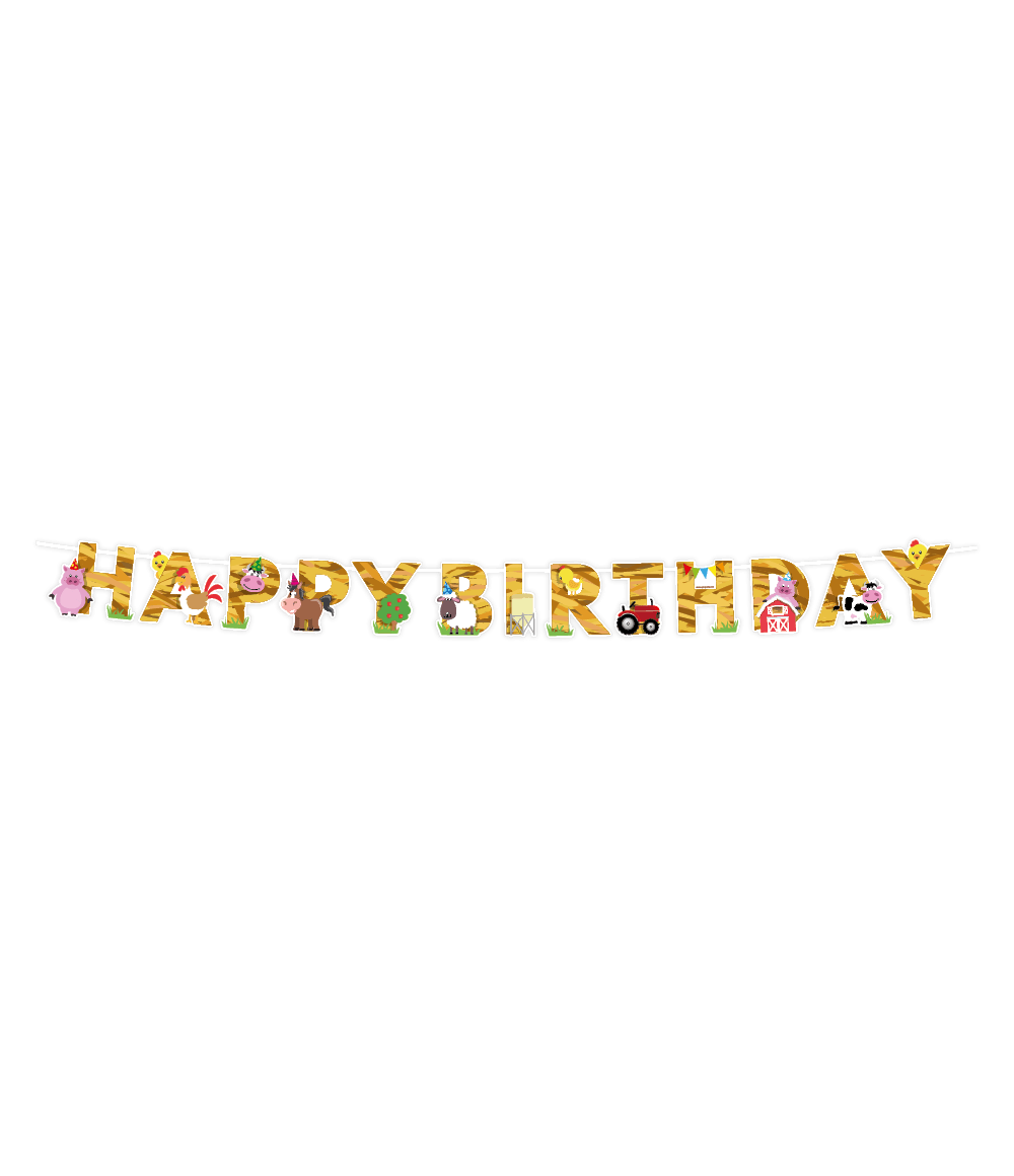 Eslinga de letras de granja Feliz Cumpleaños 2,5 m