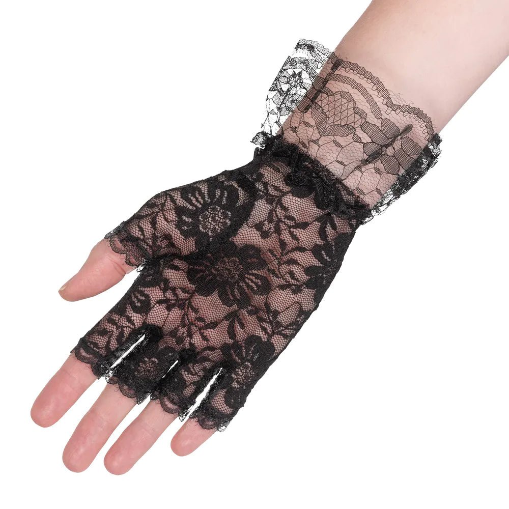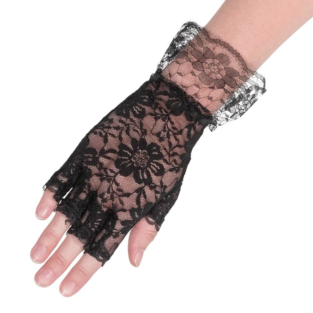 Estos elegantes guantes de encaje sin dedos son perfectos para completar a la perfección un disfraz de flapper de los años 20. El bonito encaje negro da a los guantes un aspecto de glamour vintage inspirado en el estilo charlestón de los locos años veinte.