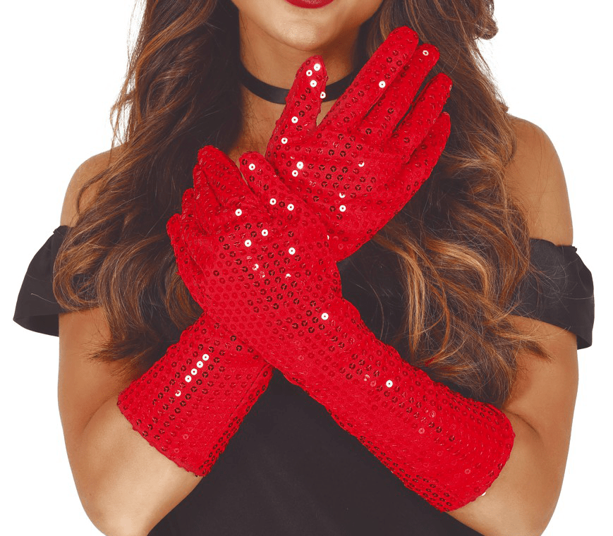 Guantes Rojos Lentejuelas 39cm