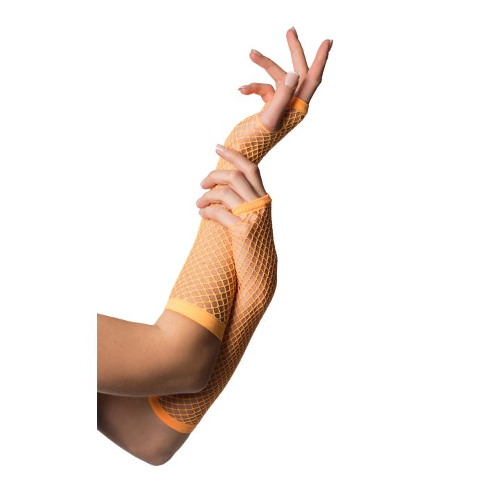 Guantes Sin Dedos Malla Larga Naranja Neón