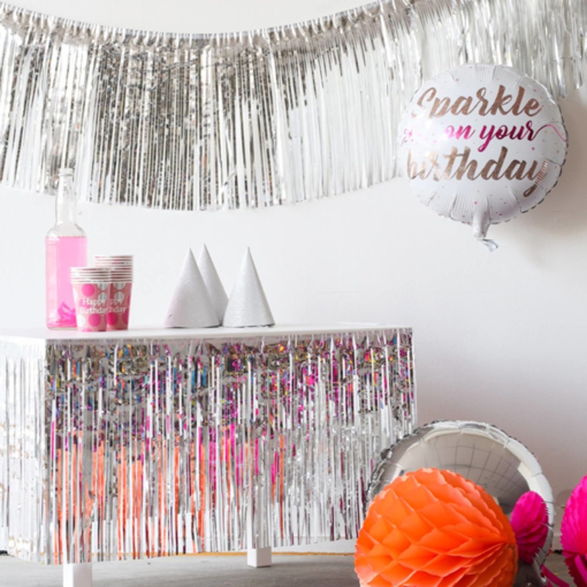 Guirnalda de flecos Plata - 6 metros. Contenido: 1 guirnalda. Color: Plata. Por ejemplo, para utilizar durante las siguientes fiestas/fiestas: aniversario, cumpleaños, Nochevieja. Esta guirnalda mide 6 metros de largo. El artículo está hecho de papel de aluminio.