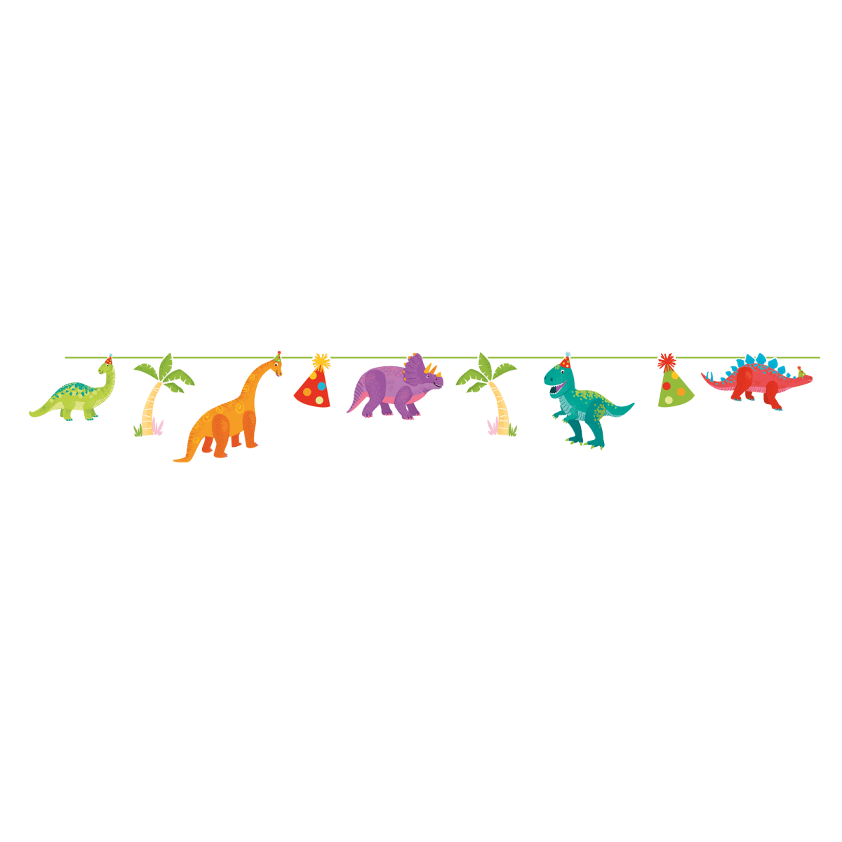 ¡Dale vida a cualquier cumpleaños o fiesta temática de dinosaurios con esta guirnalda de dinosaurios! Los alegres colores y los geniales símbolos de dinosaurio convertirán al instante cualquier habitación en un lugar de fiesta.