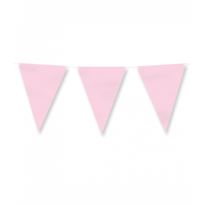 Bandera de papel - Rosa claro pastel es la banderola perfecta para una fiesta en la que el tema sea el rosa claro pastel. Esta línea de bandera de papel tiene una sutil longitud de 6 metros y combina perfectamente con otros artículos de color rosa claro pastel, como confeti, manteles, platos, tazas, servilletas y cajas de aperitivos. Presenta estos artículos juntos para que al cliente le quede claro de inmediato en qué consiste esta colección. Las banderas son de papel, por lo que son ecológicas