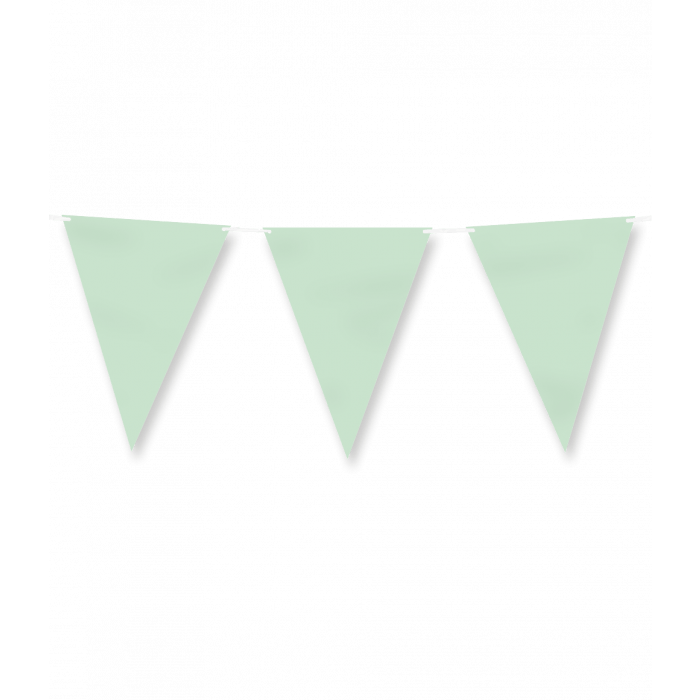 Bandera de papel verde pastel es la banderola perfecta para una fiesta en la que el tema sea el color verde pastel. Esta línea de bandera de papel tiene una sutil longitud de 6 metros y combina perfectamente con otros artículos de color verde pastel, como confeti, manteles, platos, vasos, servilletas y cajas de aperitivos. Presenta estos artículos juntos para que al cliente le quede claro de inmediato en qué consiste esta colección. Las banderas son de papel, por lo que son ecológicas