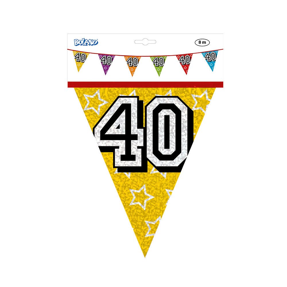 Contenido del paquete: Guirnaldas 40 Años Purpurina 8m