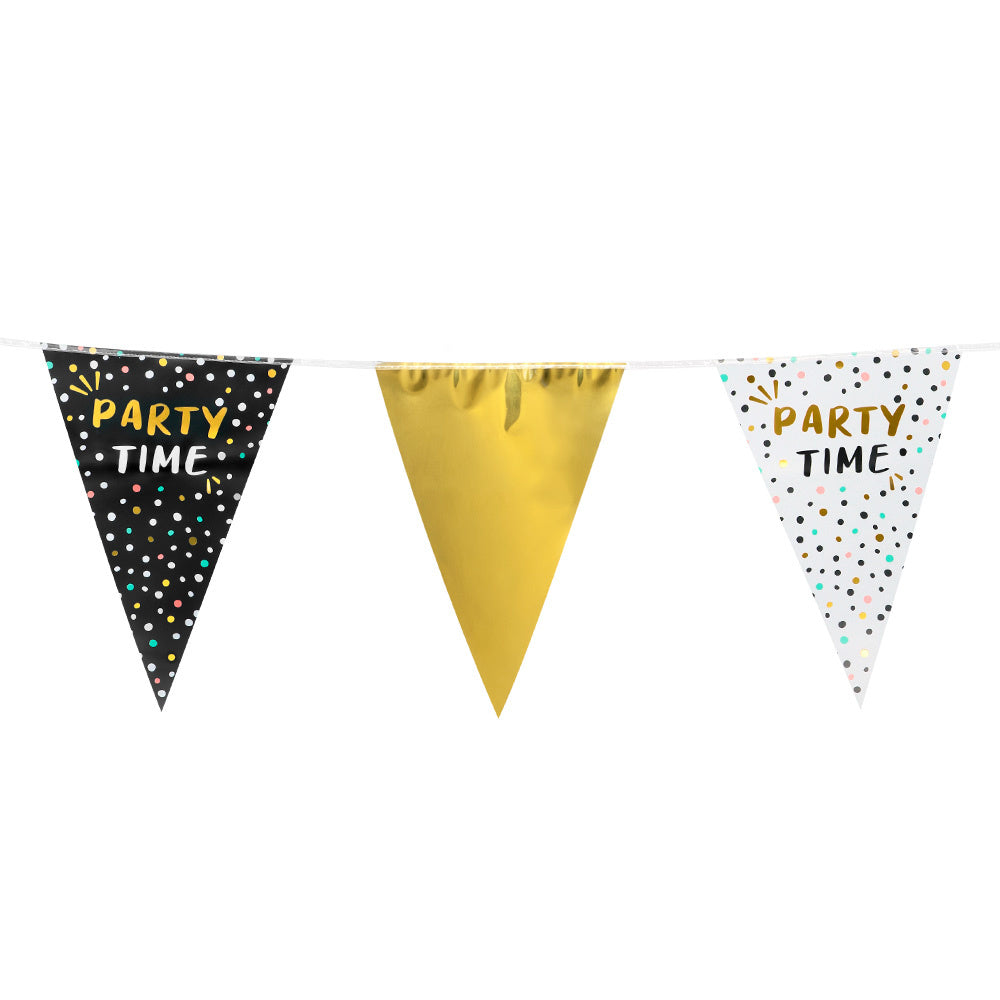 Contenido del paquete: Línea de bandera de papel de aluminio "Party time" 6 m