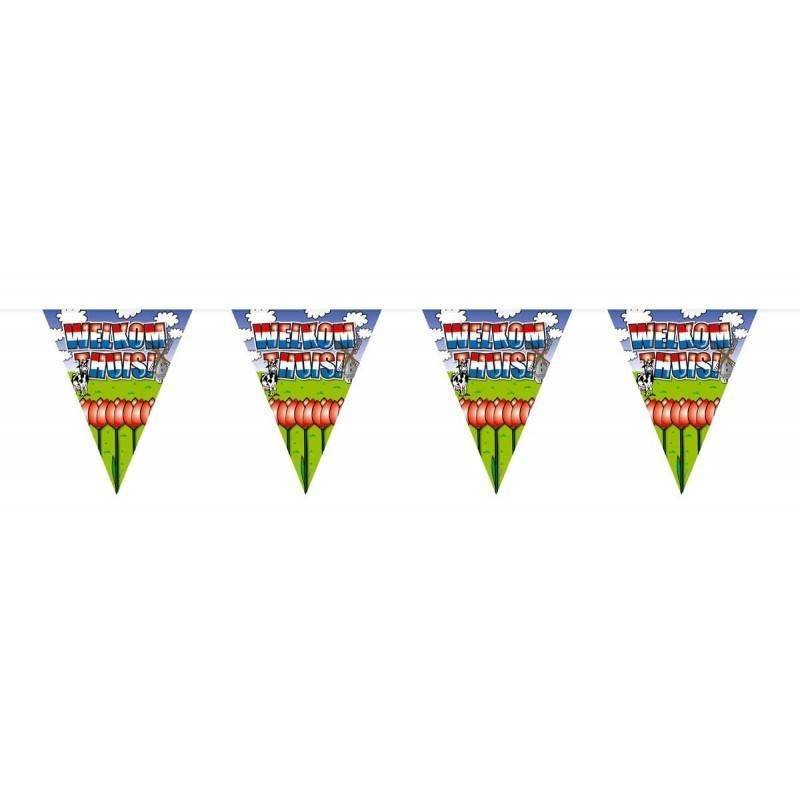 Cabo de bandera Bienvenido a Casa - 6 metros. Contenido: 1 línea de bandera. Color: Multicolor. Por ejemplo, para utilizar durante la siguiente fiesta/evento: Bienvenido a casa. Esta guirnalda mide 6 metros de largo. El artículo es de plástico.