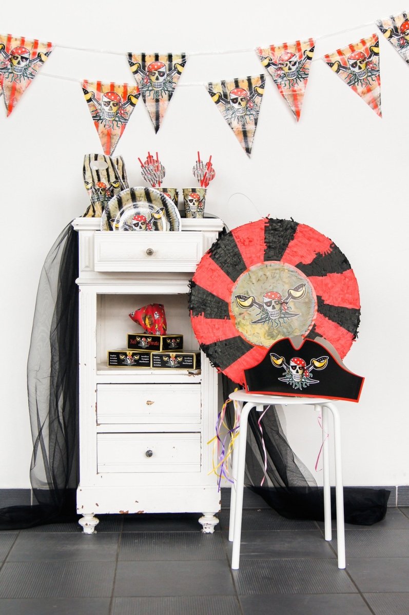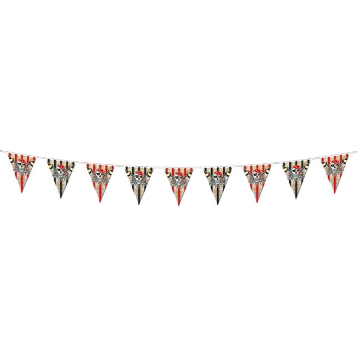 Línea de bandera pirata roja - 6 metros. Contenido: 1 línea de bandera. Color: Rojo. Tema del producto: Pirata Rojo. Por ejemplo, para utilizar durante la siguiente fiesta/evento: fiesta infantil. Esta guirnalda mide 6 metros de largo. El artículo es de plástico.