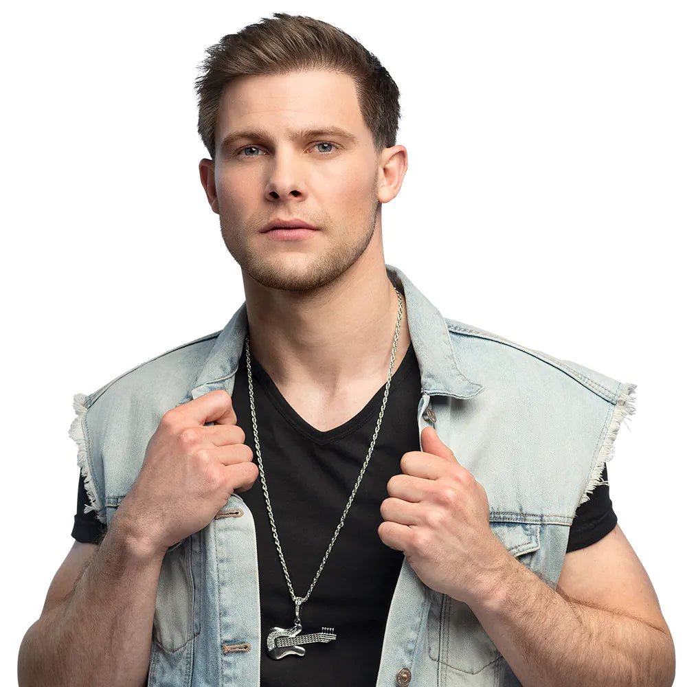 ¿Buscas ese accesorio que lleve tu disfraz al siguiente nivel y resalte tu pasión por la música? Este genial collar plateado con guitarra está diseñado para que brilles como una estrella del rock, tanto si asistes a una fiesta temática como si vas a un carnaval o a un concierto.