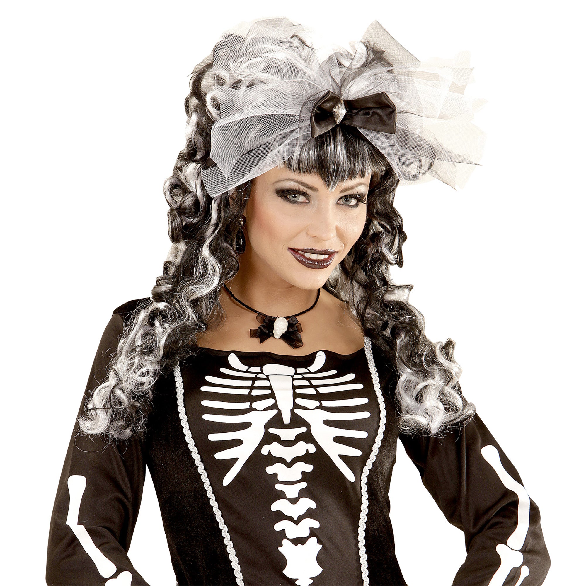Completa tu espeluznante o juguetón look de Halloween con este collar con calavera y simpática pajarita. Ideal como accesorio en fiestas de disfraces, fiestas de disfraces o disfraces de Halloween.