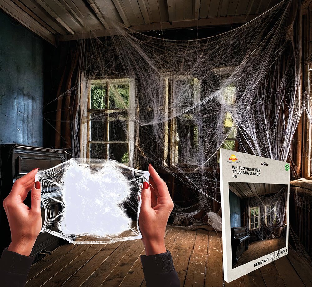 Halloween Decoración Colgante Tela de Araña Blanca 60gr