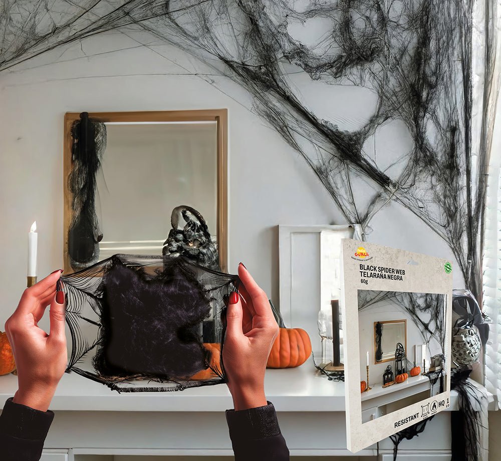 Decoración Colgante Halloween Tela de Araña Negra 60gr