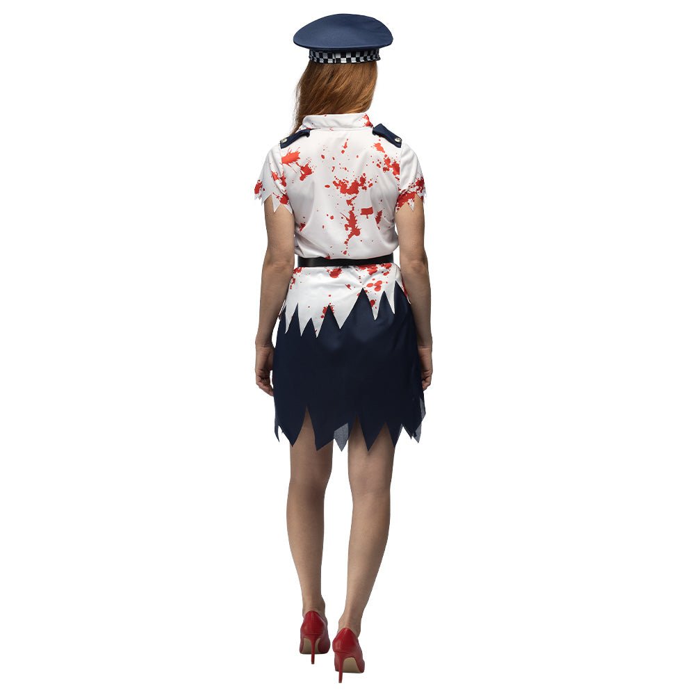 Ya sea para asistir a una fiesta de Halloween, para hacer de las calles un lugar inseguro durante Halloween o para pedir caramelos, este espeluznante disfraz de zombi para mujer te transformará en la terrorífica ejecutora de la noche en un abrir y cerrar de ojos. Completo con camisa ensangrentada, falda y gorra y cinturón de policía a juego, este disfraz crea un aspecto escalofriante para Halloween que seguro que te impresionará Color: blanco/rojo