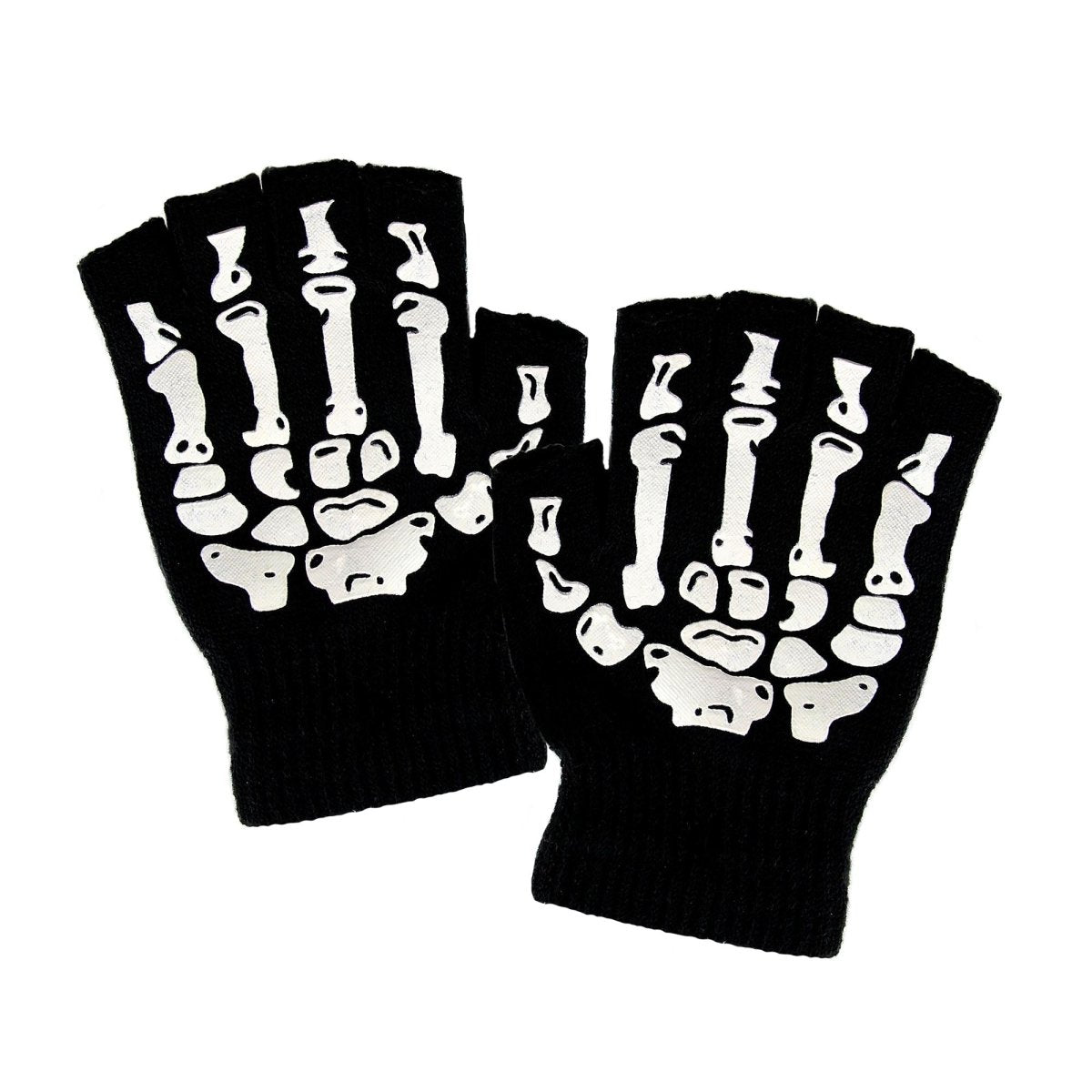 Guantes de Halloween Negro Blanco Esqueleto Sin Dedos