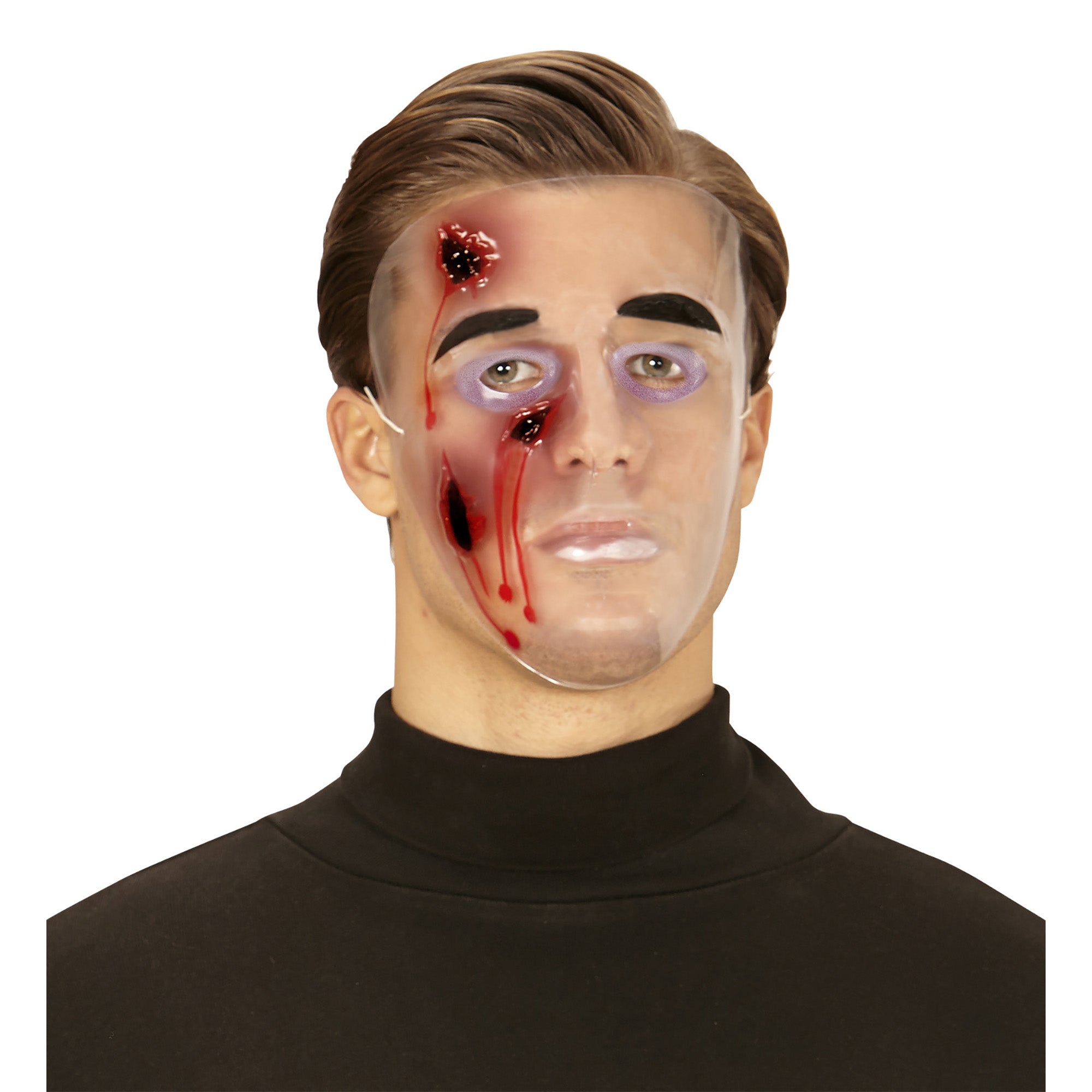 Completa tu look de Halloween con esta máscara realista con una herida sangrante. Ideal para disfraces espeluznantes y fiestas temáticas en las que quieras destacar.