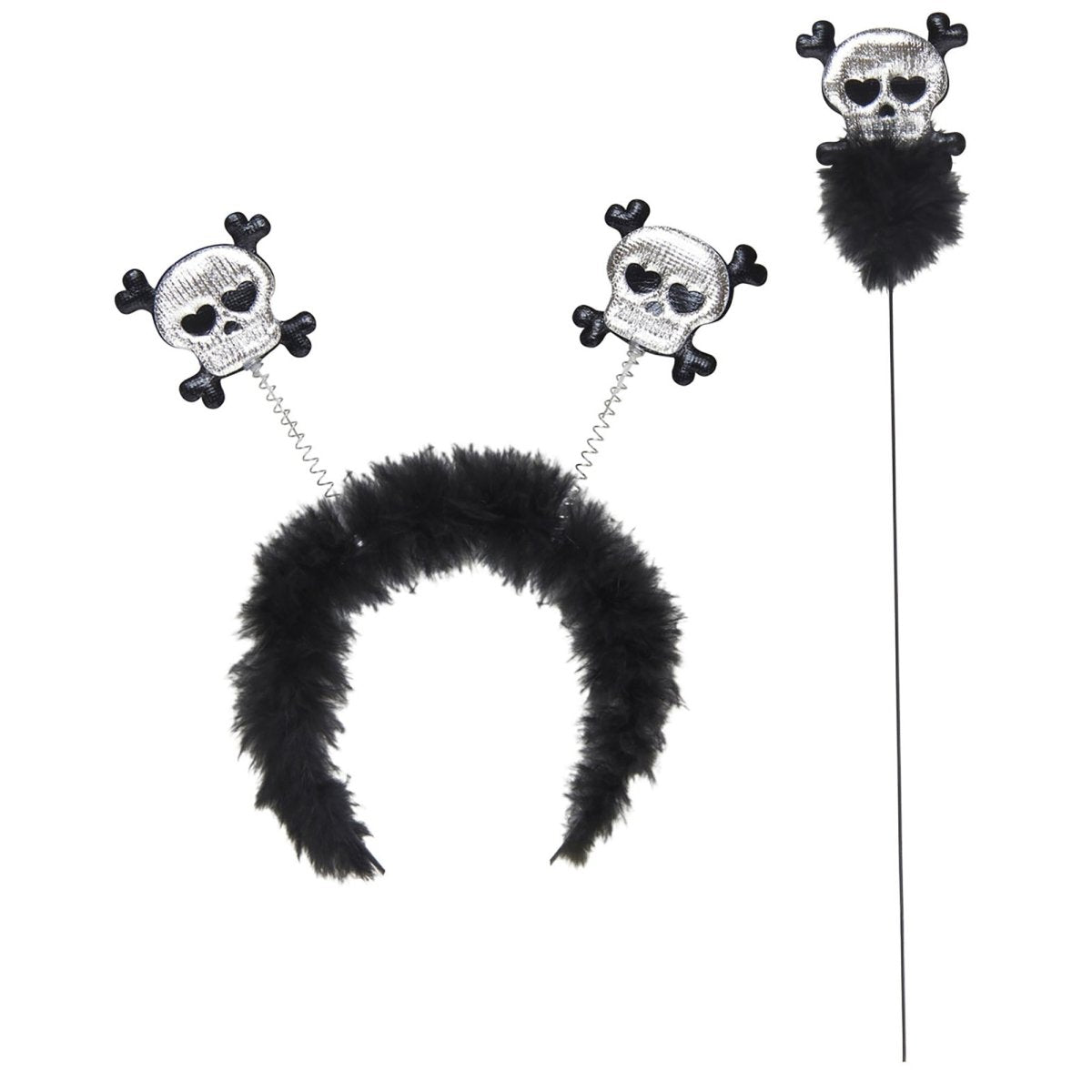 Contenido del paquete: diadema y bastón con calavera y huesos