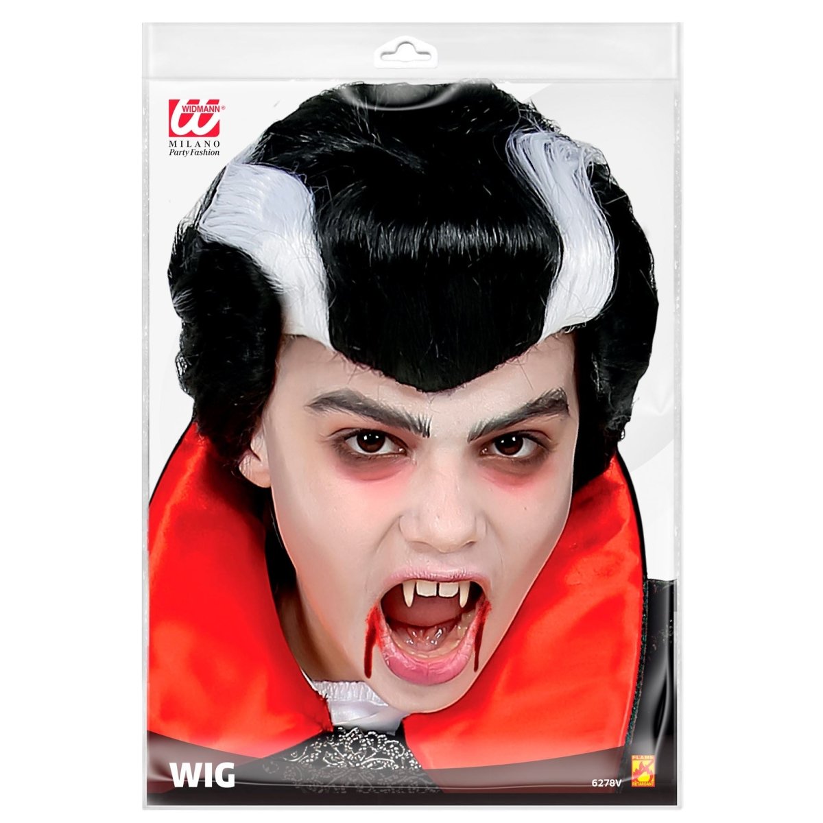 Peluca Halloween Negro Blanco Vampiro