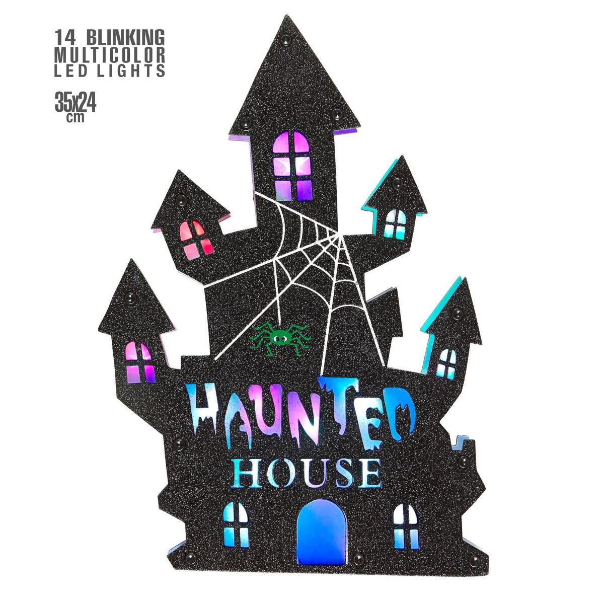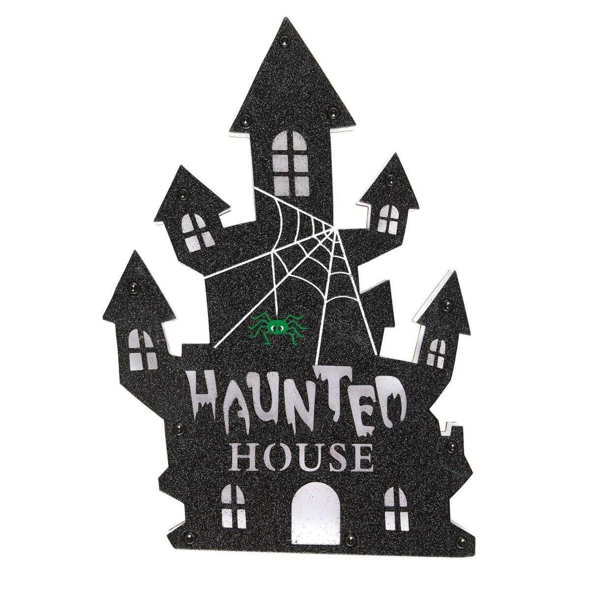 Cartel Puerta Halloween Casa Embrujada Con Luz