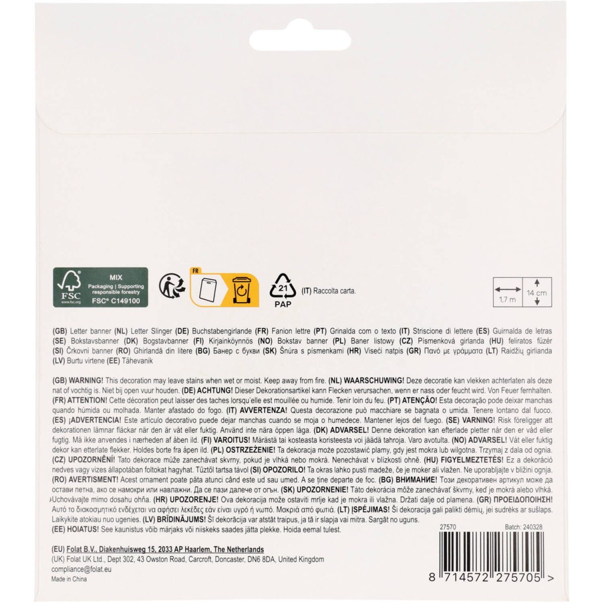 ¡El cumpleañero siempre marca! Juego de guirnaldas de letras - Fútbol Fantástico - 1,5 metros. Contenido: 1 guirnalda de letras en 2 partes. Para utilizar, por ejemplo, en las siguientes fiestas/festejos: Fiesta infantil, Cumpleaños. La guirnalda consta de dos partes: una guirnalda con el texto "FELIZ CUMPLEAÑOS" (letras de unos 14 cm de altura) con una copa dorada de campeón a cada lado, y una guirnalda con el texto "ES UN GOL" (letras de unos 14 cm de altura) con una portería de fútbol a cada lado. Impreso por ambas caras. Todas las piezas pueden deslizarse hacia delante y hacia atrás sobre la cinta gris claro. Todos los detalles dorados brillan de verdad gracias a la técnica de estampación en caliente utilizada. Las cintas de ambas guirnaldas miden 1,7 metros. Este juego de guirnaldas de letras pertenece a la colección Fútbol Fantástico de Folat. Este artículo está hecho de papel.