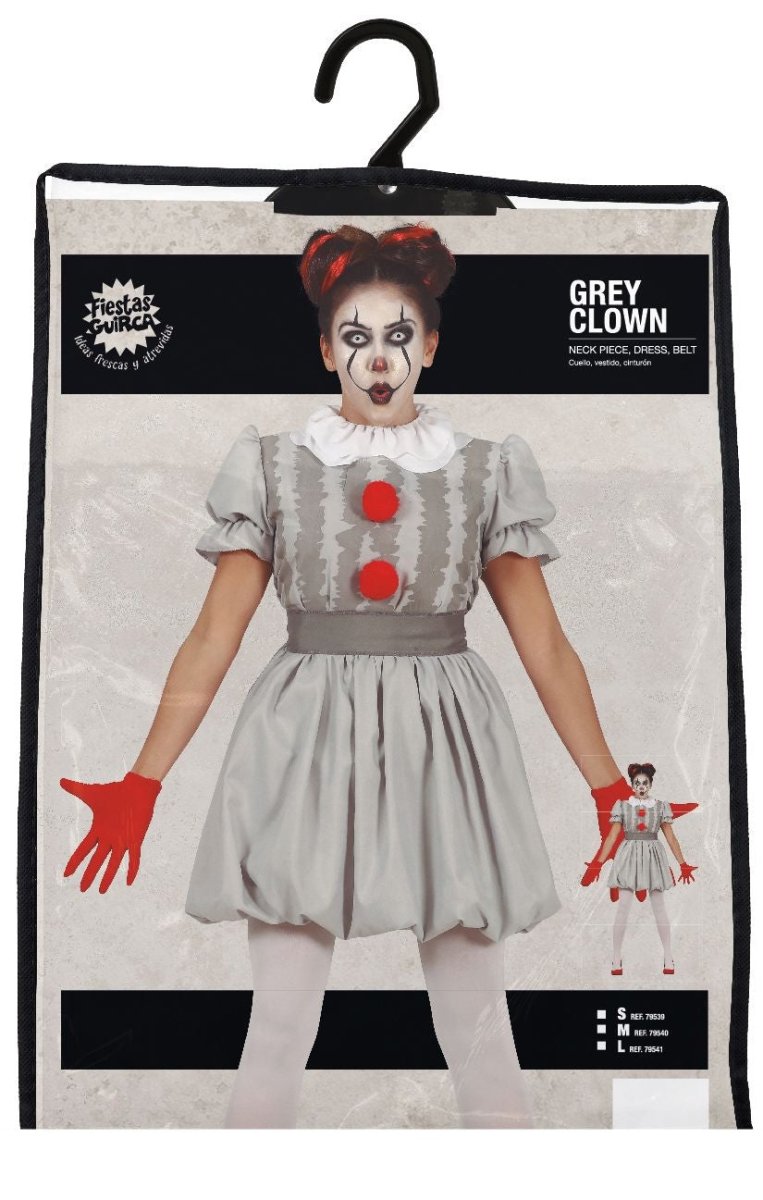 Horror Payaso Disfraz Halloween Señoras Gris