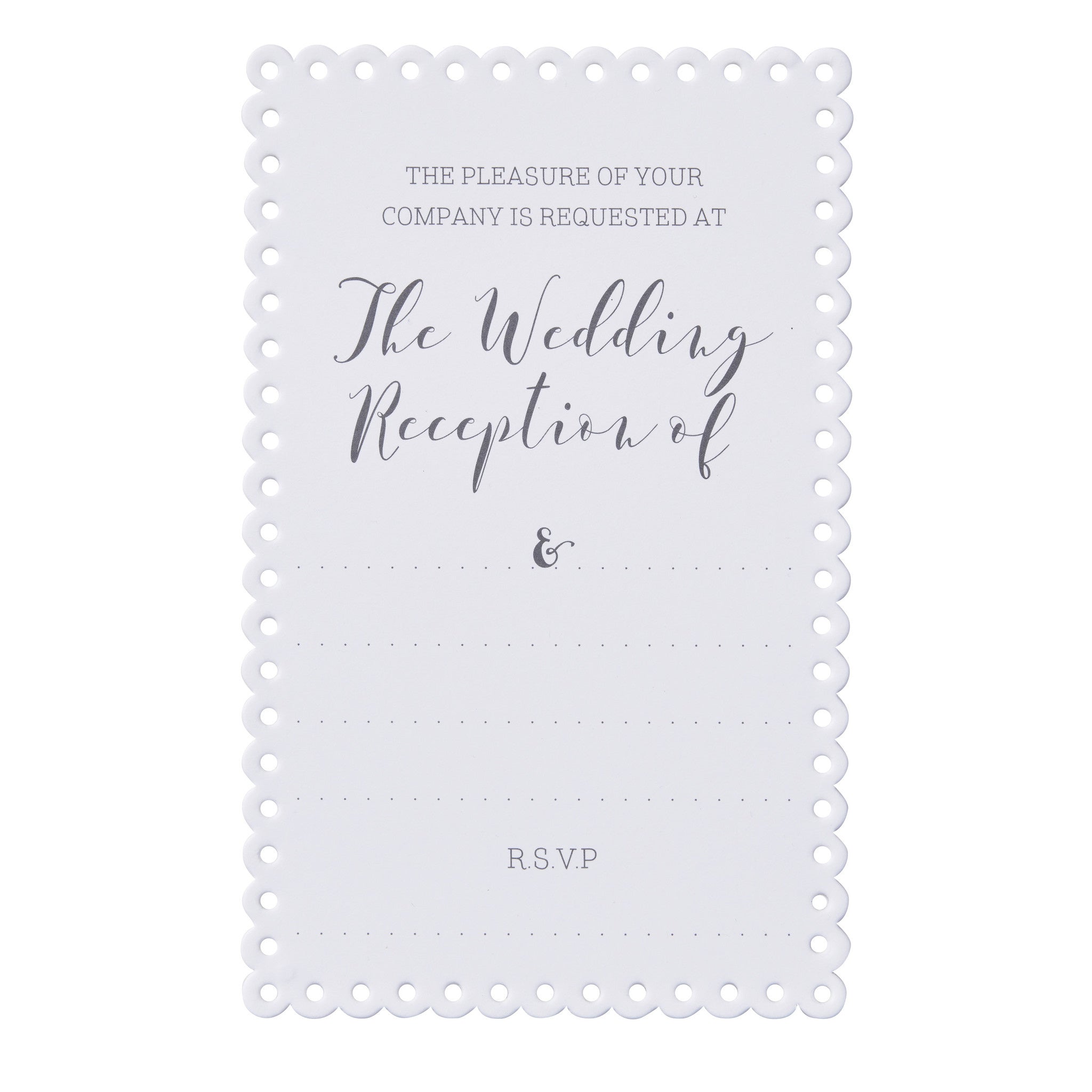 Invita a tus amigos y familiares a tu banquete de boda con estas bonitas invitaciones. Estas invitaciones en blanco nítido están bellamente estampadas con un diseño moderno que seguro gustará a todo el mundo.