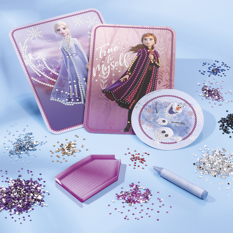 - Decora 3 tarjetas de lujo de Frozen con más de 1.300 piedras brillantes, incluida la herramienta de aplicación y la bandeja de acedera