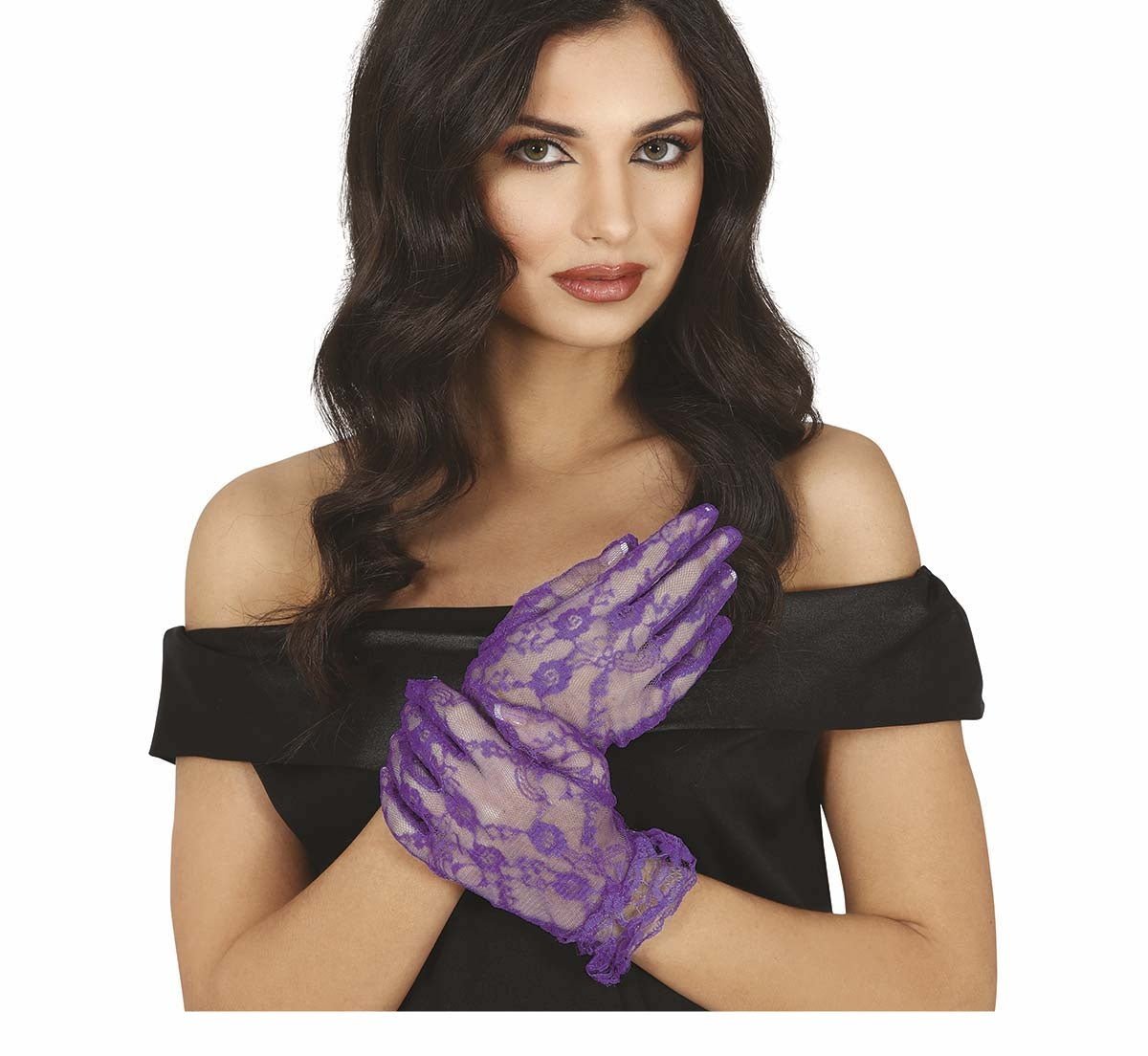 Guantes Morados Encaje 22cm