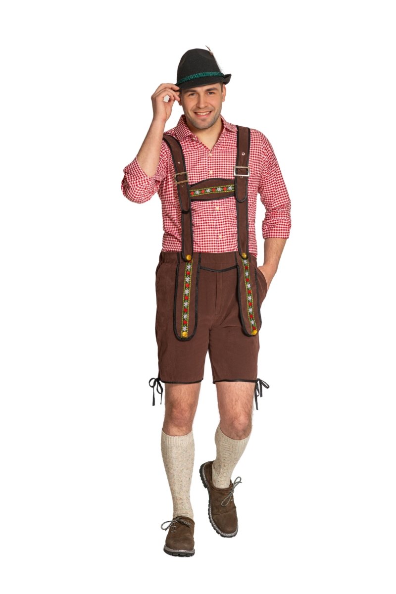 Lederhose Johann con tirantes ajustables Marrón oscuro Corto