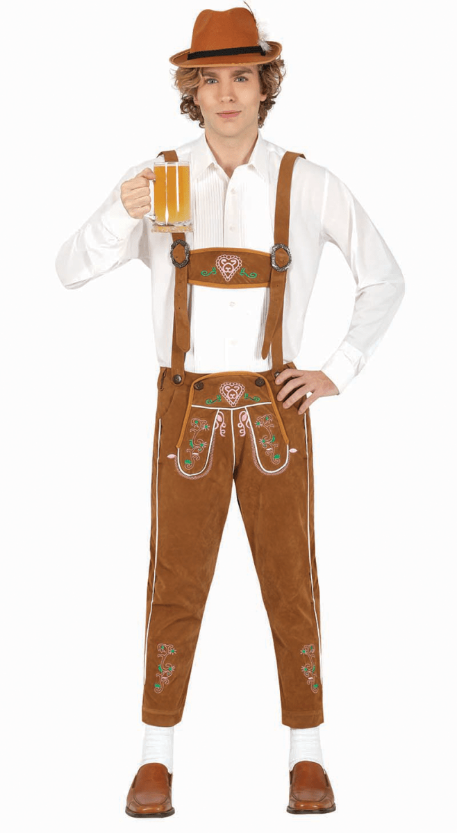 Pantalón de cuero Largo Marrón Tirantes Ajustables