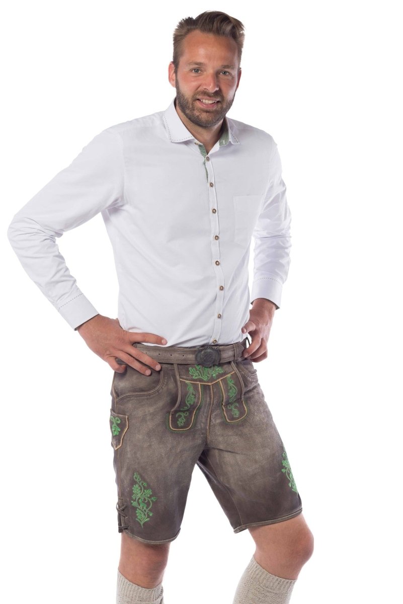 Lederhose Corto de Piel Sombra Verde y Cinturón