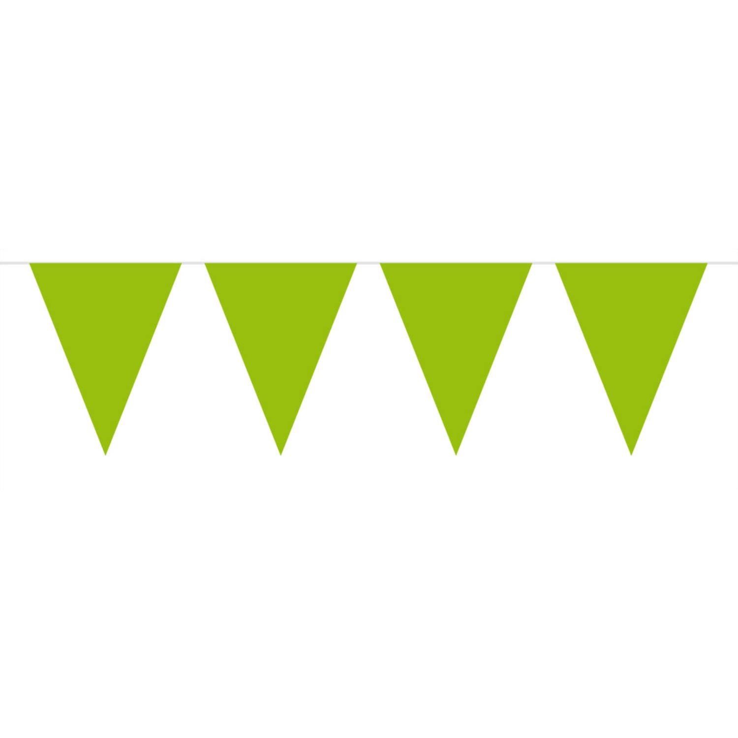 Línea de bandera verde lima - 10 metros. Contenido: 1 línea de bandera de 10 metros. Color: Verde. Por ejemplo, para utilizar en las siguientes ocasiones: cumpleaños, fiesta infantil. Esta guirnalda mide 10 metros de largo. El artículo es de plástico.