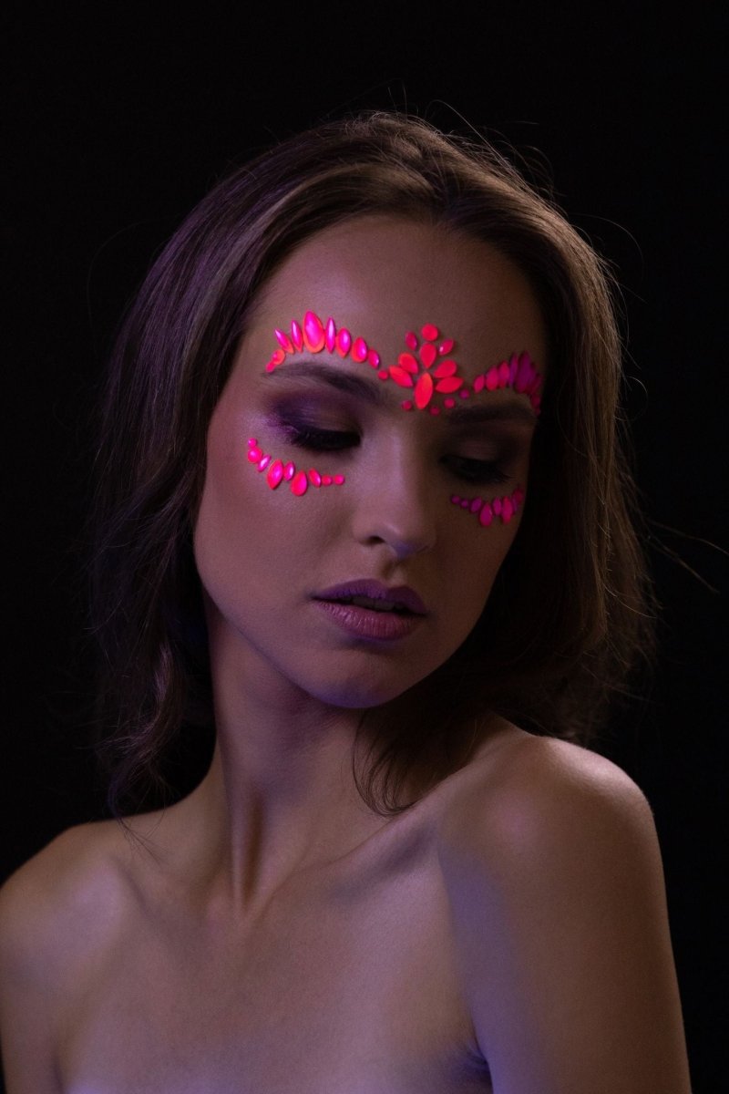 Brillo de luna Joyas faciales UV neón Rosa intenso
